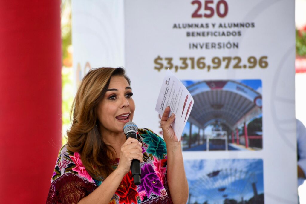 La Gobernadora de Quintana Roo, acompañada de la presidenta honoraria del DIF, Verónica Lezama Espinosa, inauguró un domo que beneficiará a 250 alumnos en actividades deportivas, cívicas y culturales, cumpliendo uno de sus compromisos de infraestructura educativa.